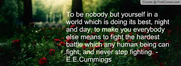 3. E. E. Cummings wrote of humanity and how we have to battle to retain our uniqueness in a world that is training people to be clones and do and think the dame, never give in to this.